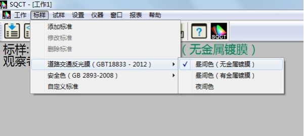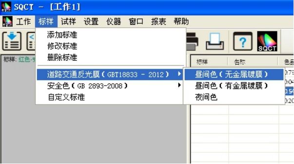針對國內交通路標使用較多的標準GB/T18833,SQCT軟件將該標準中的標準色域納入其中,客戶只需根據自己需要進行選擇即可。