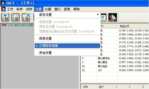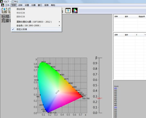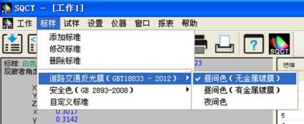 針對國內交通路標使用較多的標準GB/T18833,SQCT軟件將該標準中的標準色域納入其中,客戶只需根據自己需要進行選擇即可。