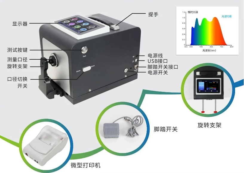 全波段均衡LED光源保證了在可見光范圍內有充足的光譜分布,避免了白光LED在特定波段的光譜缺失,保證了儀器測量速度以及測量結果的準 確性,專業(yè)UV光源確保UV測試更可靠。